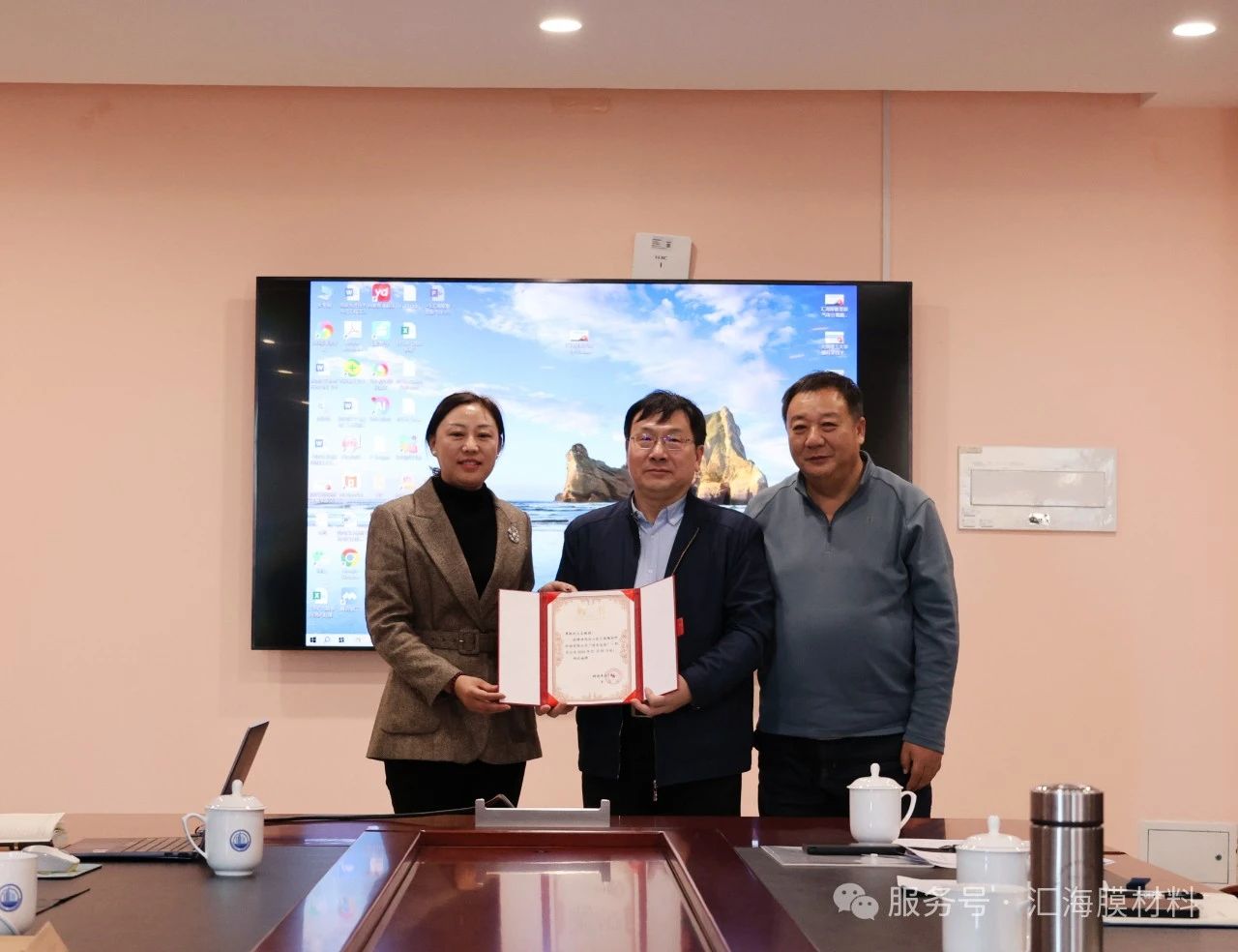 會(huì)上,隆重舉行了王志教授技術(shù)總監(jiān)聘任儀式。董事長(zhǎng)謝忠寶和董事張建菊共同為王志教授團(tuán)隊(duì)頒發(fā)了聘書(shū),雙方合影留念。